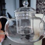 I bought it because it’s a heat-resistant dish, so I can boil it right away, and I think it’s good when I pour hot water and drink tea. It is. I like it because it’s only made of glass, not a stainless net, so it seems a lot safer and more neat. It looks much better because of transparent glass.