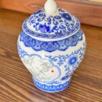 Very beautiful small jar with bright blue picture. The order came fast and was well packed. I’m very pleased.