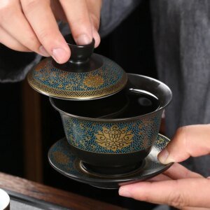 Chinese Teaset Classical Black Clay Gaiwan Tea Cups Tureen 180ml Lid Bowl Saucer Traditional Handmade Tea Brew Tea Cup