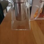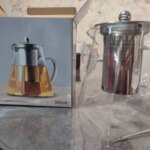 Very nice pitcher. Small, glass with a steel basket and a lid. Looks lovely. He arrived very quickly. Brilliantly packaged, secured. I’ll buy another one, bigger one.